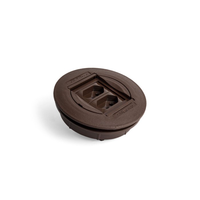 Caixa de Tomada Embutir Universal Redonda 2 Tomadas Flex Marrom