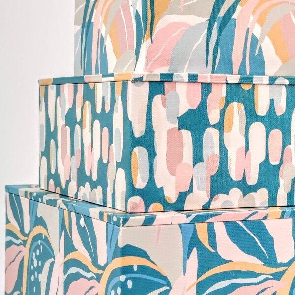 Caixa Decorativa Azul E Rosa 30/25/20cm Folhagem Kit 3pc