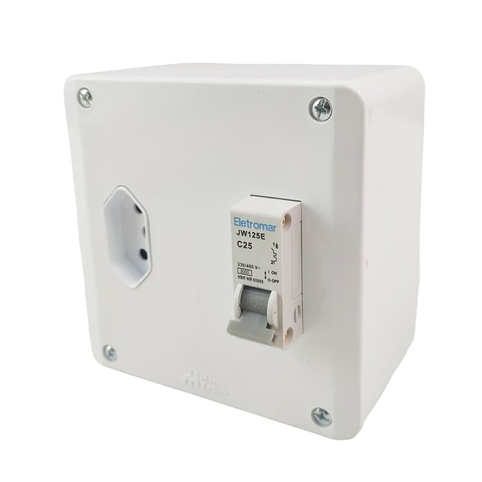 Caixa Disjuntor 25A com Tomada 20A Unipolar Ar Condicionado Interruptor Embutir Proteçao Sobrepor Ne