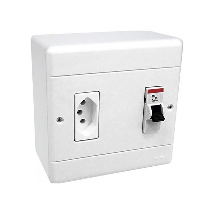 Caixa Disjuntor P/ Ar Condicionado De Sobrepor Com 1 disjuntor 25A + 1 tomada 20AUsado em instalações de Ar Condicionados, Bombas e diversos aparelhos.Garantia do vendedor: 1 meses