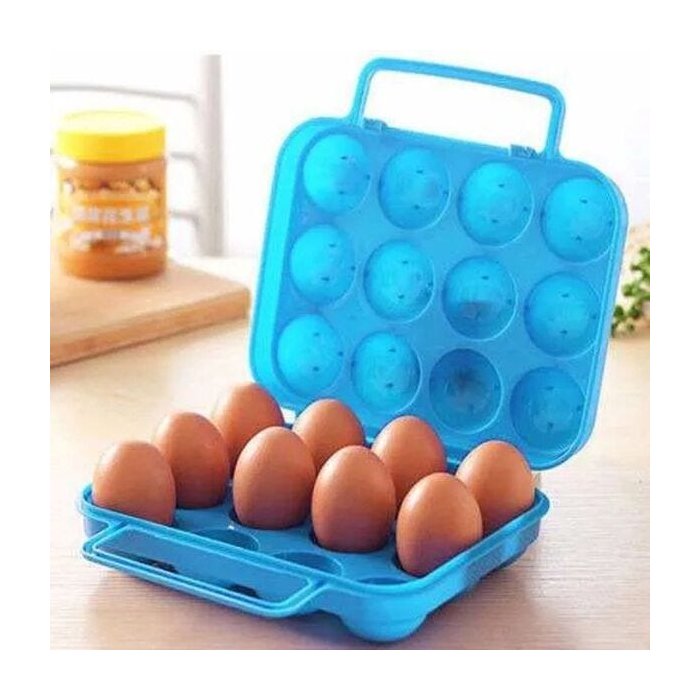 Caixa Dobrável Transporte Armazenamento Ovos Alça 12 Espaços Trabalho Academia Acampamento - Azul-cl