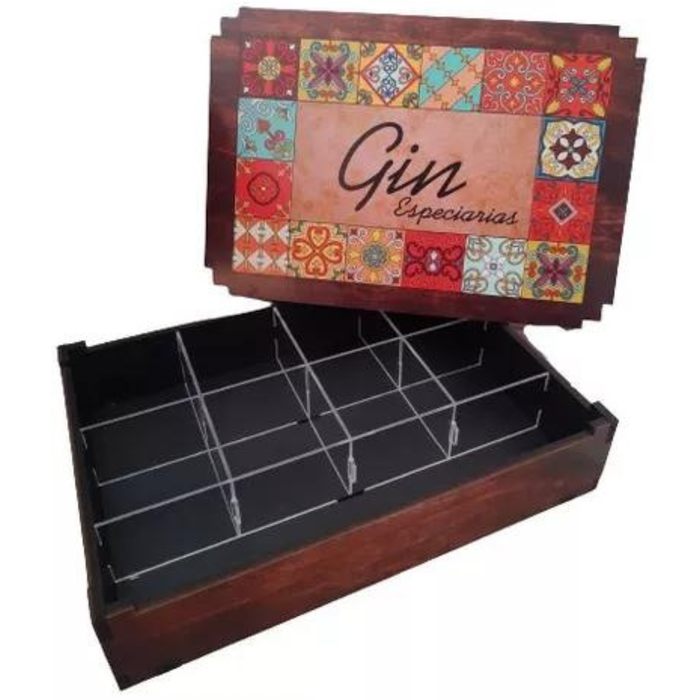 Caixa Gin Tonica - Porta Chá - Box Especiarias Organizadora - 8 Divisórias - MDF Adesivado - 29cm
