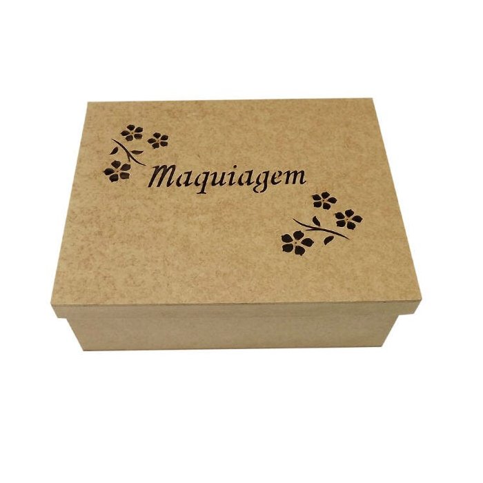 Caixa Maquiagem Flores Tampa de Sapato com Divisões - Madeira MDF Crua