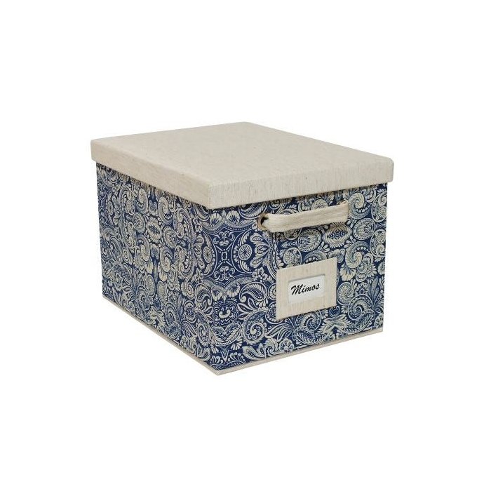 Caixa Média Super Luxo de Tecido com Identificador e Alças Azul Marinho Pasley e Linho.