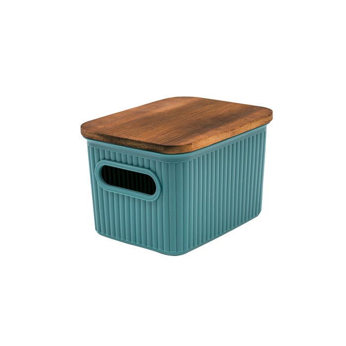 Caixa Organizadora 1,5l de Plástico com Tampa de Madeira Acácia - Oikos