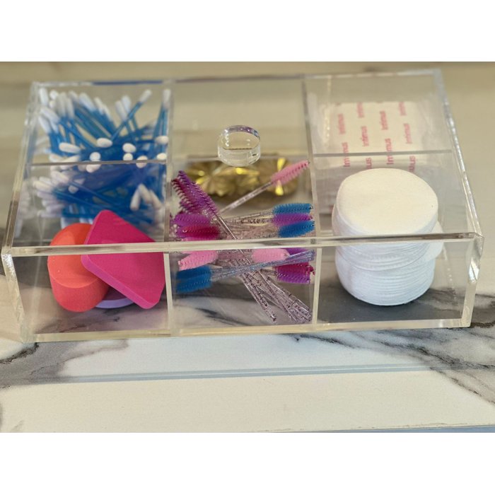 Transforme a organização do seu banheiro com a nossa elegante Caixa Organizadora em Acrílico com 6 Divisórias. Projetada para oferecer praticidade e sofisticação, esta peça é ideal para armazenar algodão, cotonetes e pequenos itens de maquiagem, mantendo tudo ao seu alcance e de forma organizada.