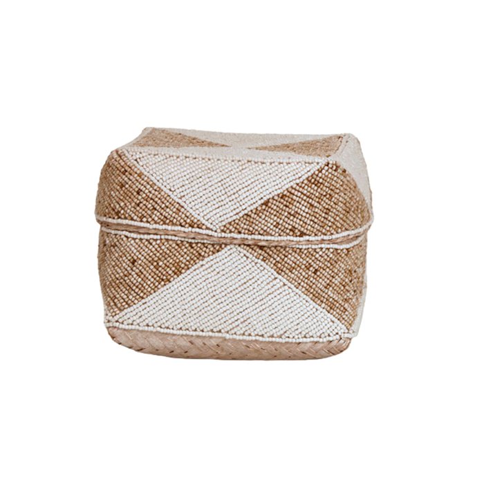 Caixa Organizadora Decorativa em Fibra de Bambu Miçangas M Branco e Beje