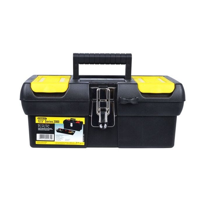 Características: Caixa feita em Plástico Polipropileno. Bandeja interna organizadora. 2 compartimentos superiores. Fecho com travas em metal niquelado. Suporta 50kg na parte superior. Estrutura diferenciada, com vários pontos de reforço no interior da caixa, o que garante a melhor entrega dos organizadores plásticos. Ideal para armazenar ferramentas ou quaisquer outros objetos que estiverem dentro da capacidade da caixa. Dimensões (C x A x L): 32,2 x 17,7 x 13,5 cm. Capacidade interna: 7kg. Tamanho: 12,5". Cor: Preto e amarelo.