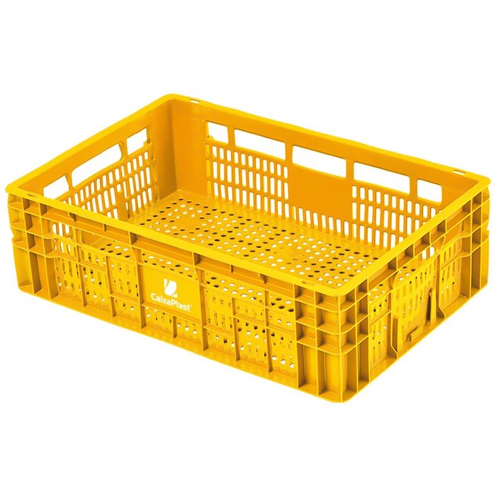Totalmente vazada sendo ideal para o transporte e armazenamento de produtos que necessitam de ventilação ou de refrigeração, como frutas, legumes e verduras.