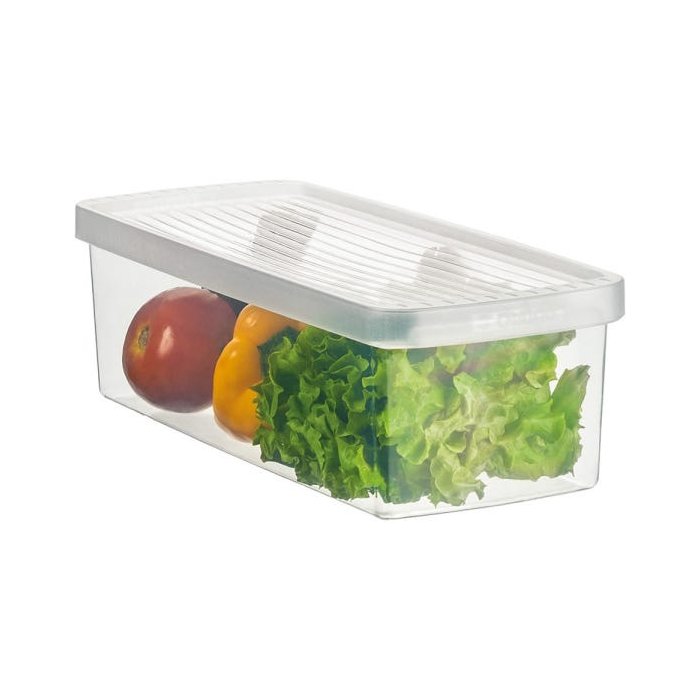 A caixa para legumes e salada foi pensada para armazenar frutas, verduras e legumes em refrigerador, possui saídas de ar em sua tampa o que faz com que o ar circule conservando assim o frescor dos alimentos por muito tempo.