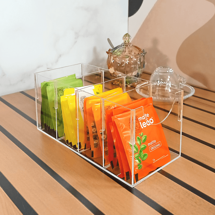Caixa Porta Chá Sachês De Açúcar Adoçante 4 Divisórias Em Acrílico Transparente