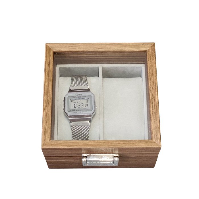 Com duas divisórias internas estrategicamente posicionadas, a nossa Caixa Porta-Relógio oferece uma organização impecável para dois relógios distintos. Cada compartimento é revestido com um tecido suave e luxuoso, assegurando que seus relógios sejam mantidos em condições ideais, protegidos contra arranhões indesejados e poeira.