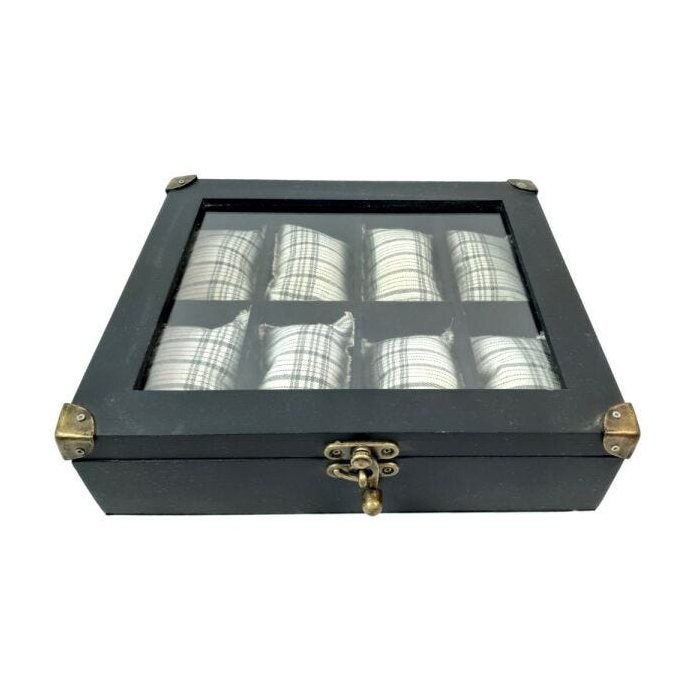 caixa porta relógio de pulso masculino em mdf para gaveta - preto para 8 relógios