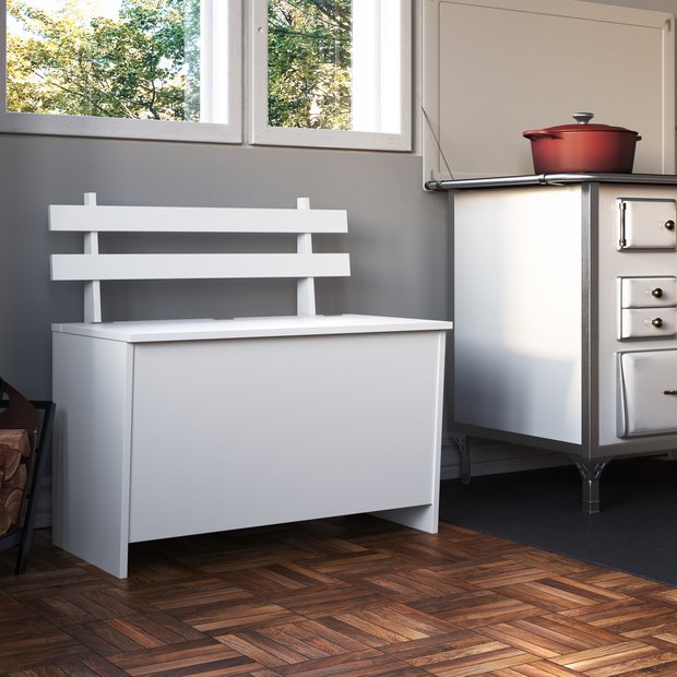 Caixa Porta Trecos com assento da Completa Móveis na cor Branca, possui espaço interno para acomodar os mais variados objetos e utencílios com assento e encosto na parte traseira, trata-se de um produto compacto e funcional, adequado para qualquer cantinho da casa.