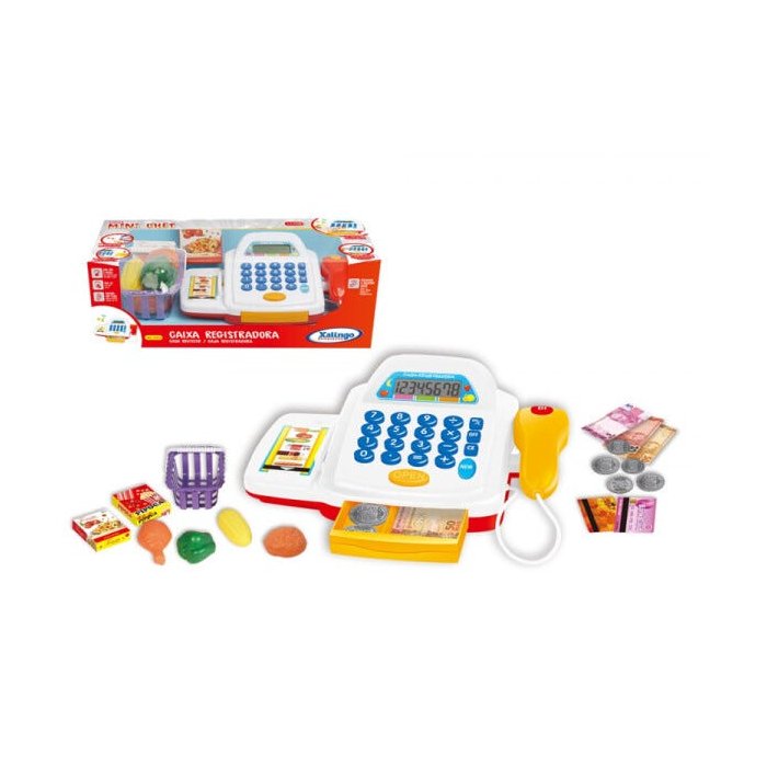 Brinquedo Caixa Registradora Mini Chef com Sons e Luzes Xalingo Brinquedos Caixa registradora com sons e luzes, beep, display funcional e acessórios. Indicado para crianças a partir dos 3 anos. Brincar com essa temática favorece a aprendizagem e desenvolve, de forma lúdica, a autonomia, a possibilidade de escolha, a relação de troca, além de conceitos matemáticos e sociais. Utiliza 2 pilhas AA (1,5 V).