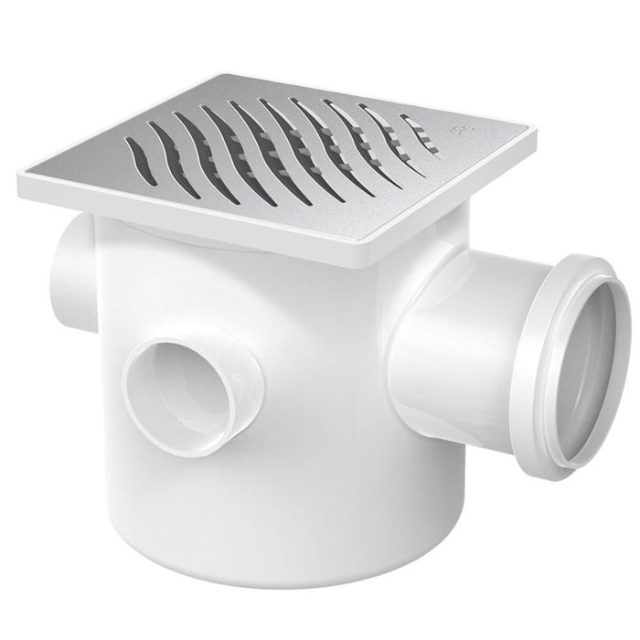 Caixa Sifonada com Porta Grelha Prata e Grelha Inox Quadrados 150x185x75mm com 3 Entradas - 27125228 Prata