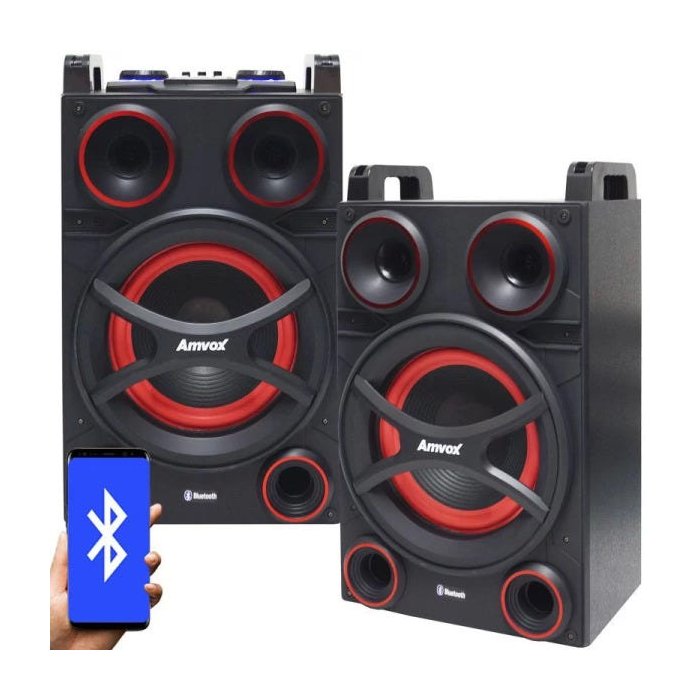 Caixa Som Amplificada Bluetooth 1000W Rms Ativa Passiva Mp3 Fm USB SD Aux LED Amvox Aca 1010 Twin
