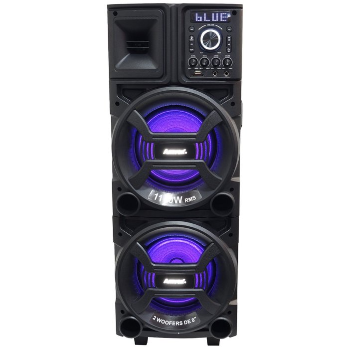 Caixa Som Amplificada Bluetooth 1100w Rms Woofer Mp3 Usb Led Tws Bivolt Aca 1101 Duplo 8 Black Amvox