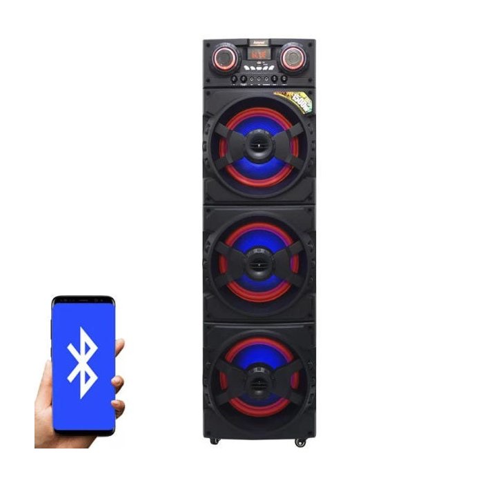 Surpreenda-se com a Caixa Amplificada ACA 1515, com leds rgb, colorindo muito mais sua festa! Praticidade, design inovador e muita, mais muita potência em uma caixa de som. A caixa Amplificada ACA 1515 possui entrada USB, SD, RÁDIO FM, entradas para microfones e instrumentos musicais, rodinhas e alças laterais para facilitar na hora do transporte. Sua potência é de 1500W Rms com 3 Subwoofer de 12´´ e 2 Tweeters de 6,5´´. Leve a sua festa para qualquer lugar! Informações técnicas Produto: Novo Marca: Amvox Modelo: ACA 1515 Cor: Preta Voltagem: 110/220V (bivolt chaveado) Potência: 1500W Rms Diâmetro do alto-falante: 12´´ (3 unidades) Diâmetro do tweeter: 6,5´´ (2 unidades) Luz com indicação de funcionamento: Sim Botão liga/desliga: Sim Botão liga/desliga led: Sim Display em led: Sim Alça de transporte: Sim (retrátil) Alça lateral: Sim Led RGB: Sim Rodizios: Sim Recursos de áudio Leitura de arquivos por pasta: Não Função gravar (REC): Não Formatos de áudio: MP3 Rádio Frequência: FM Busca automática de estações: Sim Memoriza estações: Sim Conectividade Bluetooth: Sim Entrada USB: Sim Entrada SD Card: Sim Entrada auxiliar: Sim Entrada para microfone 1 (não incluso): Sim Entrada para microfone 2 (não incluso): Sim Entrada para instrumentos: Sim Peso e medidas (aproximados) Medidas da caixa de som: 1,42 x 40 x 34 cm (altura x largura x profundidade) Comprimento do cabo da fonte de alimentação: 1,60 m Medidas da embalagem: 41 x 47 x 148 cm (altura x largura x comprimento) Peso bruto: 33,6 Kg Itens inclusos: 1 Caixa de Som Bluetooth, 1 Cabo Auxiliar, 1 Manual (português)