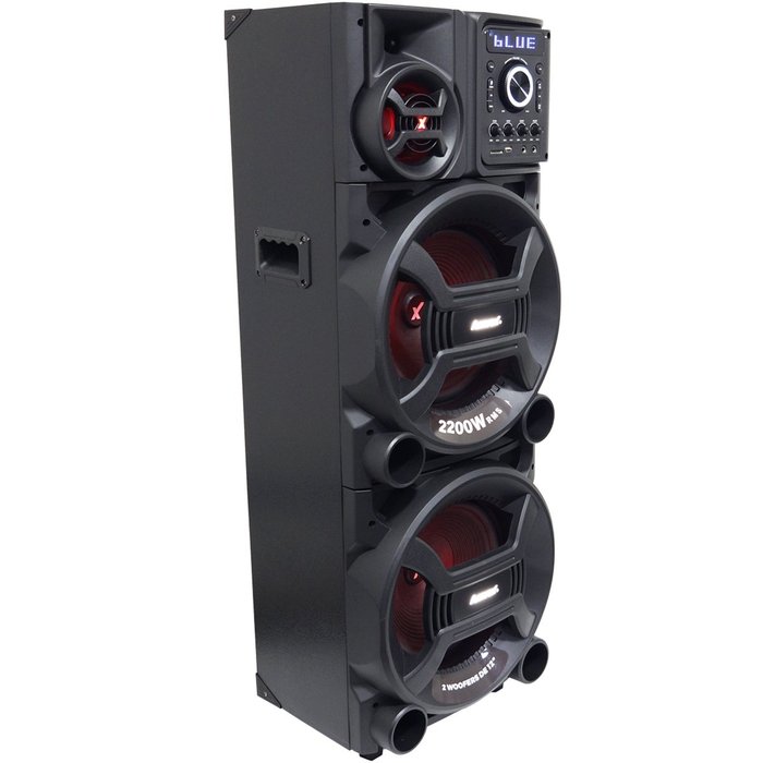 Caixa Som Amplificada Bluetooth 2200w Rms Woofer Mp3 Usb Led Tws Bivolt Aca 2201 Pesadão Black Amvox