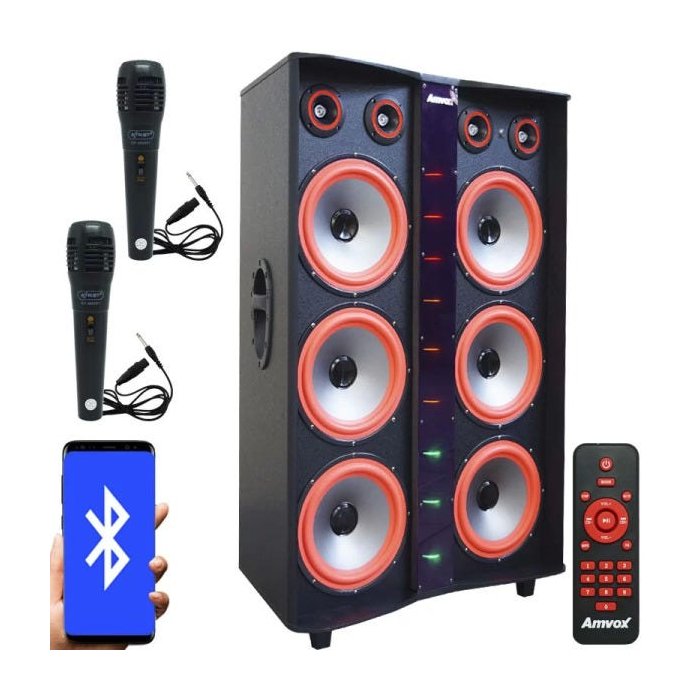 Caixa Som Amplificada Bluetooth 3000W Rms 6 Subwoofer LED 2 Microfones Bivolt Amvox Aca 3000 Pared