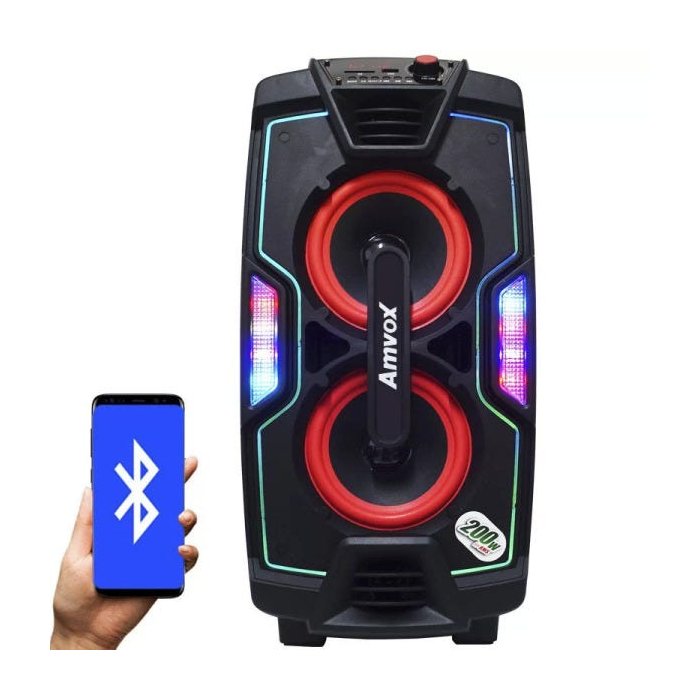 Caixa Som Amplificada Portátil Bluetooth 200W Rms Mp3 Fm USB SD Aux LED Bateria Amvox Aca 200