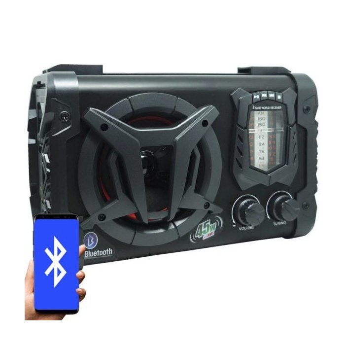 Caixa Som Amplificada Portátil Bluetooth 45W Rms Mp3 Fm USB SD Aux Bivolt Bateria Amvox Aca 90