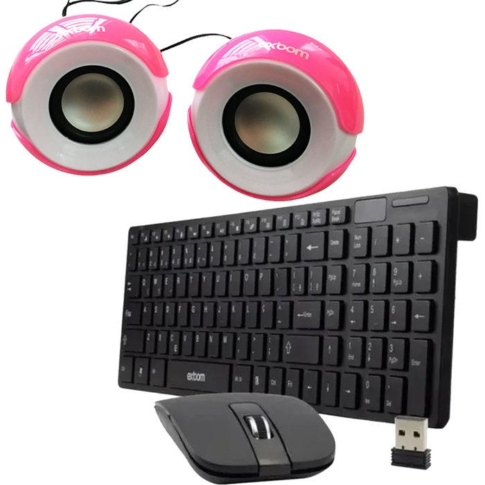 Caixa Som para Pc Cs-69 Rosa + Teclado e Mouse S/Fio Bk-S1000
