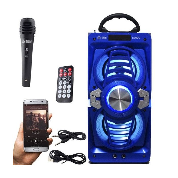 Caixa Som Portátil Bluetooth Mp3 Fm USB SD Aux Microfone Bateria 12W Rms Infokit Azul Vc-M873Bt