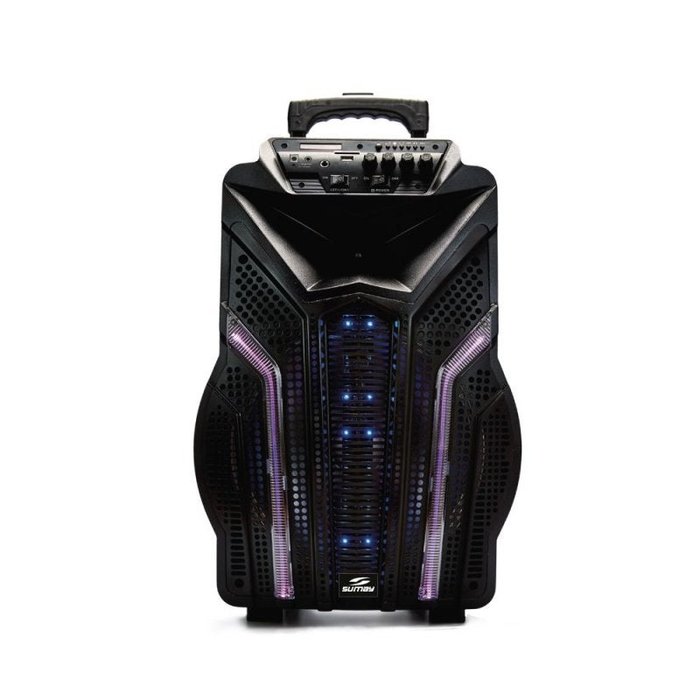 Caixa de Som Portátil FORTRESSCódigo: SM-CAP14F - 5358A Caixa de Som Fortress Amplificada Portátil possui alça e rodas para facilitar o transporte. Ouça suas músicas através de uma conexão Bluetooth, USB, Cartão de Memória SD, Rádio FM ou por uma entrada AUX. Ou se preferir, faça um karaokê, conecte um microfone a Caixa de Som e comece a cantar.Se você gosta de música, vai querer ouvir sua playlist na Caixa de Som Portátil da Sumay. Ela possui um sistema de som de altíssima qualidade com 200W de potência, com duração da bateria de até 06 horas. Faça seu Show em qualquer lugar!!!Use sua Caixa Fortress em palestras, festas, escolas, lojas, em casa, bares, restaurantes e até mesmo nas ruas! Sempre com estilo e qualidade.Desfrute do som incomparável da Caixa de Som FORTRESS Ampli?cada Portátil - Sumay.Funções extras:Entrada P10 para Microfone e equipamentos como: guitarra, violão e outros...Função gravação: Gravação de áudio do microfone;Informações TécnicasFuncionalidade Caixa de Som PortátilPotência 200WAlto-falante 12?Impedância 4 ?Sensibilidade 93dB±3dBFrequência de resposta 40Hz~20KHzCompatibilidade USB, SD card, Rádio FM e AUX entradaP10 para guitarra e Microfone e BluetoothDisplay LED integradoEntradas Microfone / guitarra ? P10, Áudio 1xRCA,Alimentação AC 50/60Hz, 110V-240VBateria recarregável 7.4 V/1 800mAh bateria de lithiumDuração da bateria Até 6h (80% do volume)Tamanho da Caixa de Som 54x30x30 cmTamanho da embalagem 58x38x38 cmCor PretaPeso líquido 7 KGPeso bruto 8 KGItens inclusos na embalagem - 1 (um) microfone sem fio (bateria para o microfone não inclusa)- Controle remoto- Caixa de Som- Manual do usuárioCódigo de barras 7898508269653NCM: 85182200