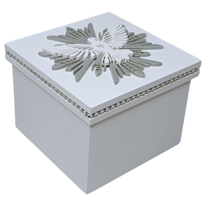 Caixa Strass Presente para Batizado com Símbolo Pomba do Espirito Santo (12x12x09) branco