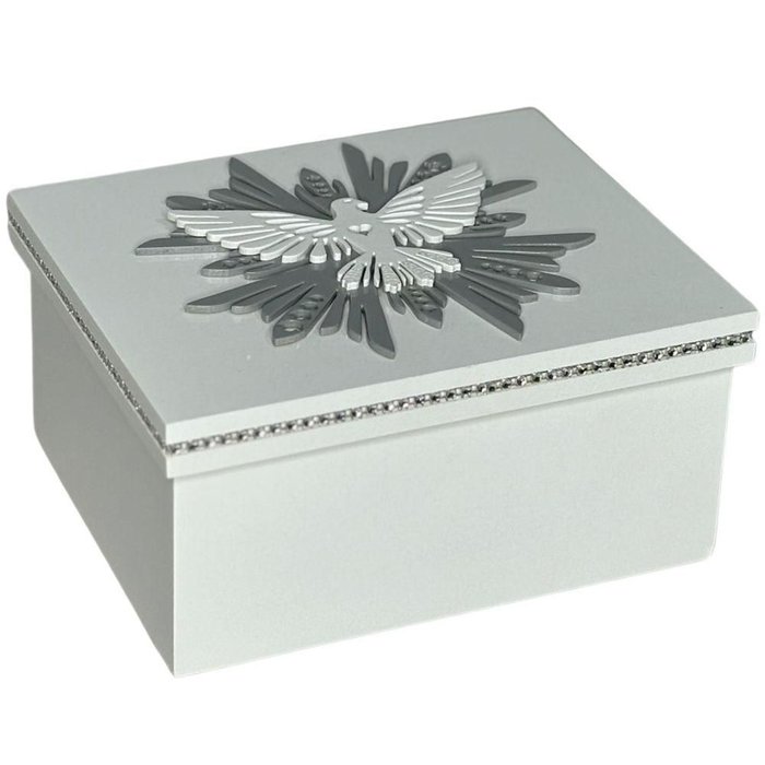 Caixa Strass Presente para Batizado com Símbolo Pomba do Espirito Santo (20x16x10)