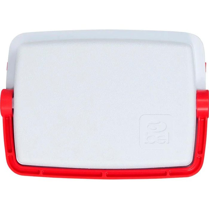 A tampa possui um design diferenciado com suporte para bebidas e sua alça ergonômica facilita na hora do transporte.