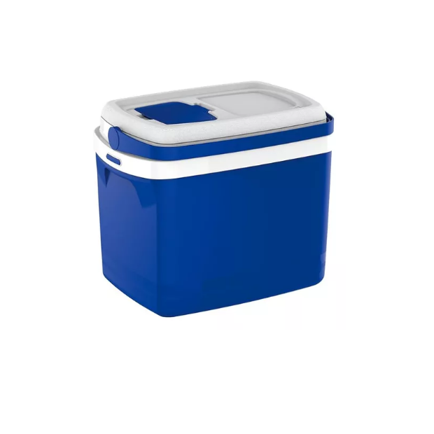 "Apresentamos a Caixa Térmica Tropical de 32 litros na cor Azul, uma companheira ideal para manter seus alimentos e bebidas frescos durante aventuras ao ar livre, piqueniques, viagens e eventos. Com capacidade generosa de 32 litros, esta caixa térmica oferece espaço suficiente para armazenar uma variedade de itens refrigerados. Fabricada com materiais duráveis e resistentes, possui isolamento térmico eficiente que mantém a temperatura interna por horas. Seu design prático inclui alças laterais para transporte conveniente e uma tampa com fechamento seguro para garantir a vedação adequada e a conservação da temperatura. A cor azul vibrante adiciona um toque de estilo e facilita a identificação da sua caixa térmica em qualquer ambiente. Desfrute de momentos ao ar livre com alimentos frescos e bebidas geladas graças à Caixa Térmica Tropical de 32 litros."