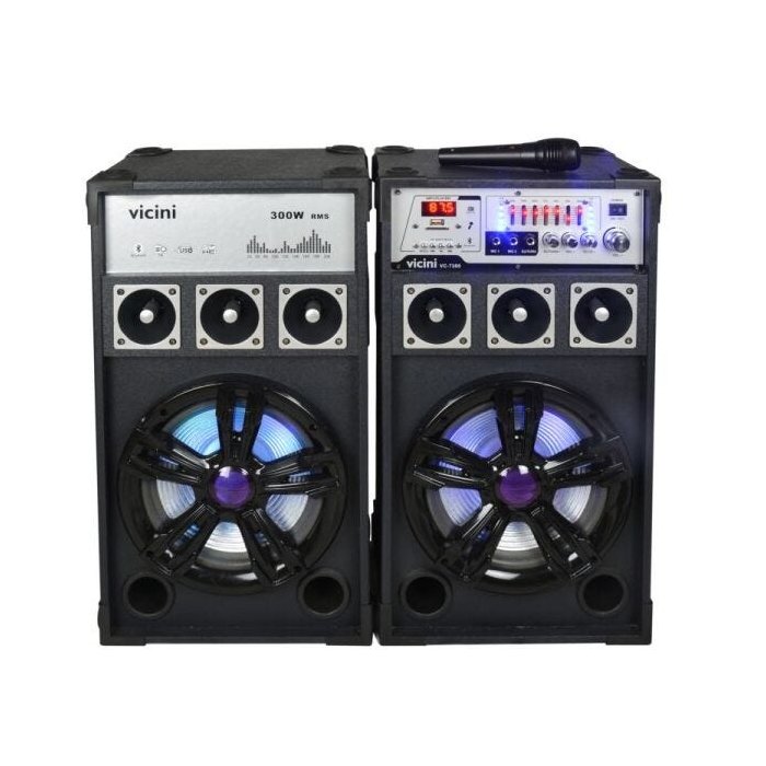1 Conj.Caixas Som Bluetooth Amplificada Mic Bivolt 300W Vicini + Microfone