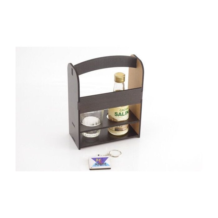 Caixinha com mini cachaça Salinas e copo dose engradado