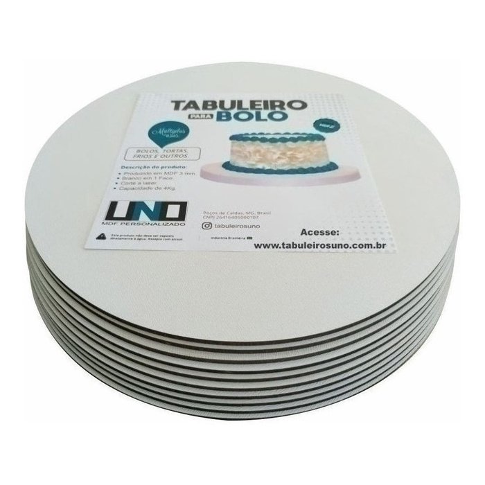Cake Board Para Confeitaria em Mdf 1 Face Branco 21 Cm Com 30 Atacado