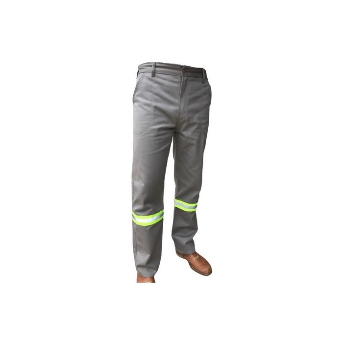 Calça em Brim 100% algodão, Costura Reforçada - Com Faixa Refletiva Verde e prata