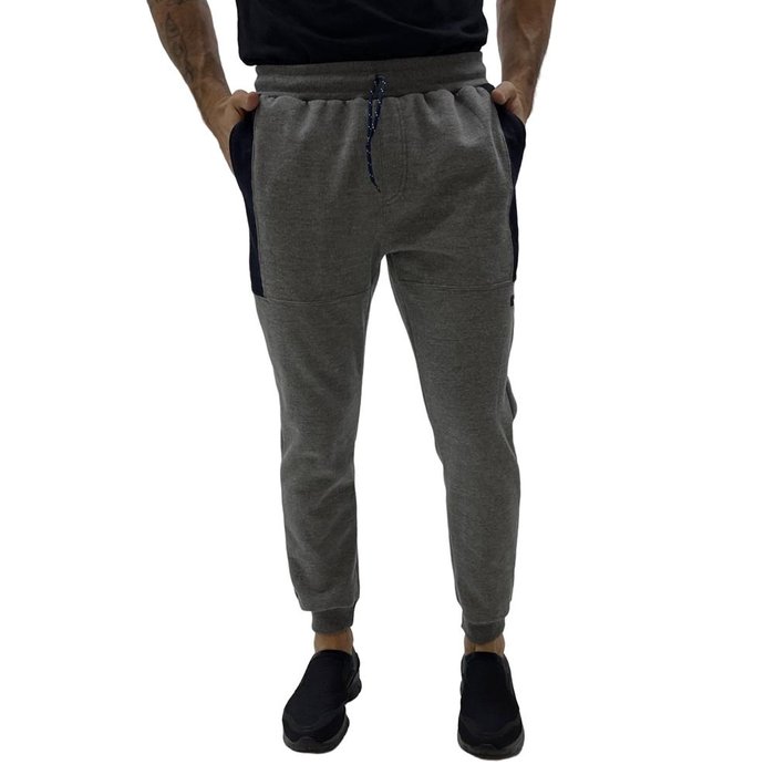 CALÇA GANGSTER MOLETOM JOGGING FLANELADO MASCULINO - GG - MESCLA CINZA-MARINHO MESCLA CINZA-MARINHO