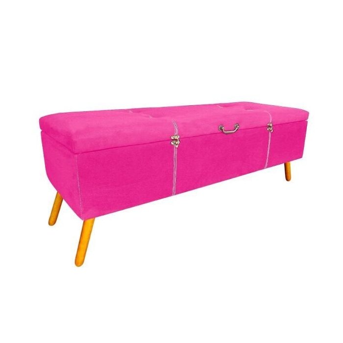 Calçadeira Baú Casal 140cm Caribe Pés Palito Pelúcia Rosa - Sheep Estofados - Rosa