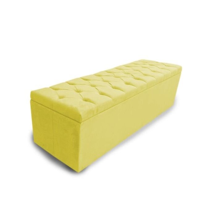Calçadeira Baú Casal 140cm Nicole Capitonê Suede Amarelo - Sheep Estofados - Amarelo