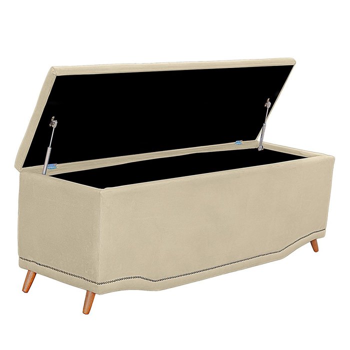 Calçadeira Baú Casal Estofada Maitê Veludo Bege Claro
