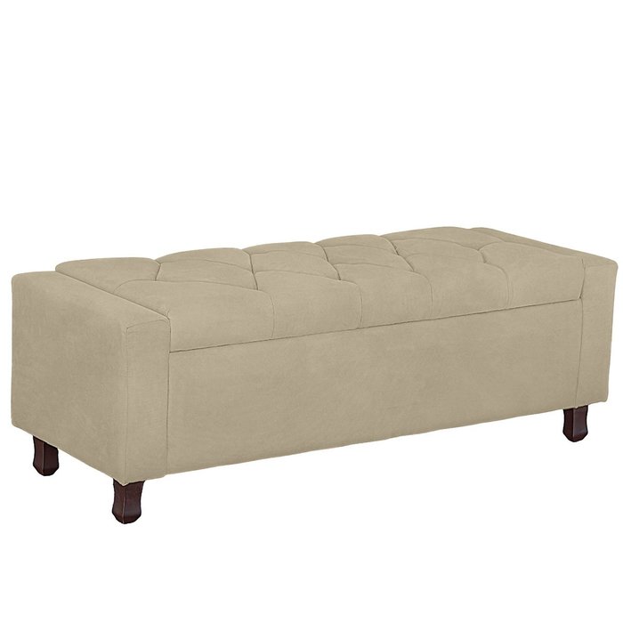 Calçadeira Baú Casal Estofada Valencia Veludo Bege