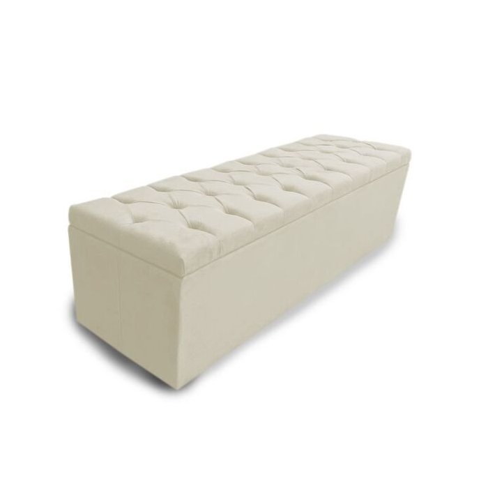Calçadeira Baú Casal King 195cm Nicole Capitonê Suede Bege - Sheep Estofados - Bege