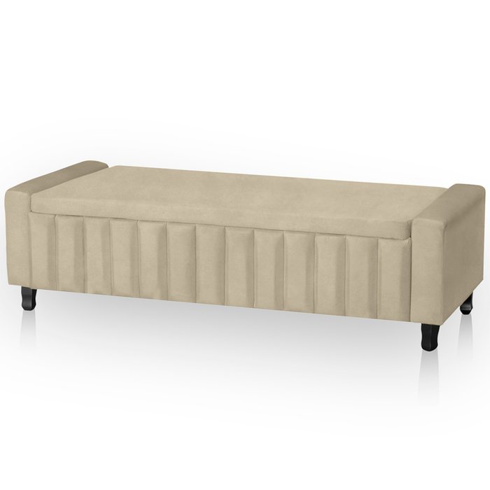 Calçadeira Baú Casal King Size Estofada Alicia Veludo Bege Bege