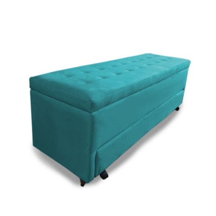 Calçadeira Baú com Sapateira Solteiro 90cm Paris Suede Turqueza - Sheep Estofados - Água Água