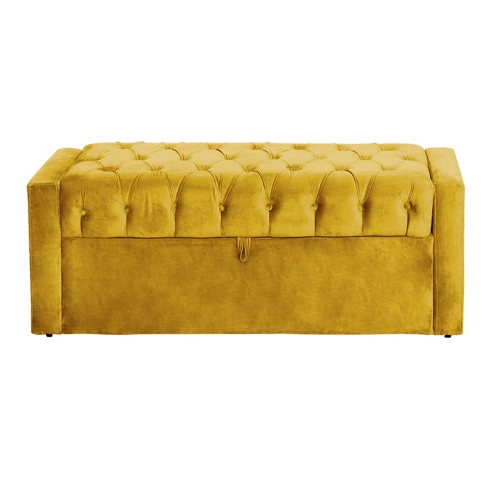 Calçadeira Baú Estofado para Cama Box Emma Solteiro 90 Cm Veludo Mostarda - Dl Decor