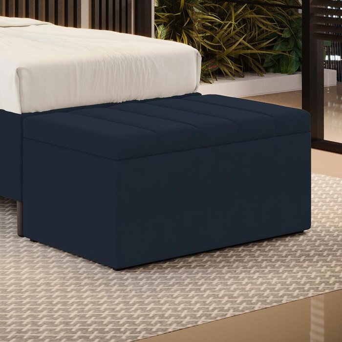 Calçadeira Baú Navi 90 Sued Aradecor Azul Marinho