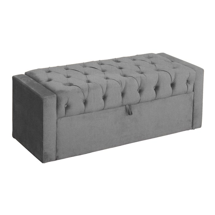 Calçadeira Baú Para Cama Box Emma Suede Cores - DS Estofados - King - Cinza Cinza