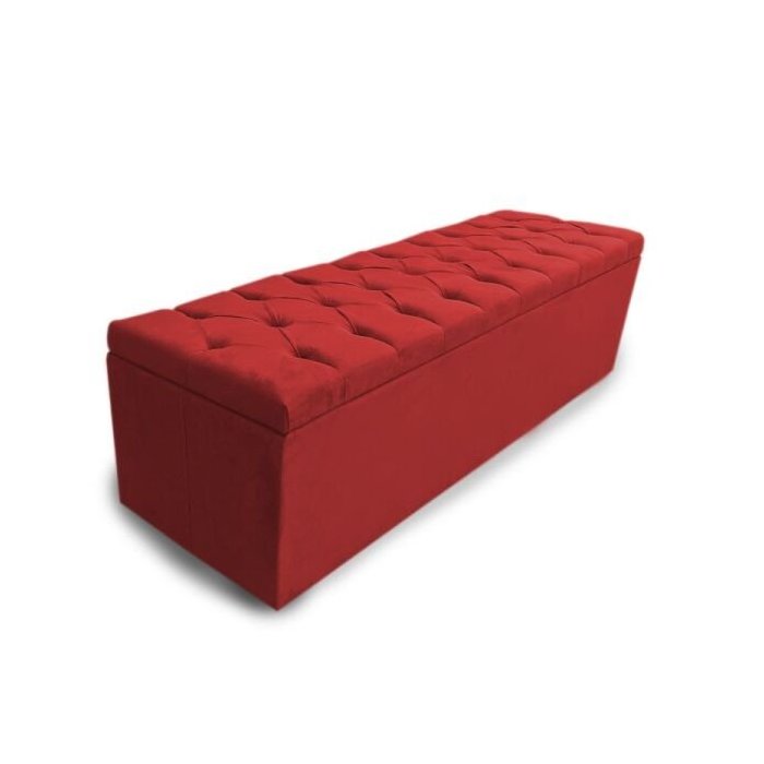 Calçadeira Baú Solteiro 90cm Nicole Capitonê Suede Vermelho - Sheep Estofados - Vermelho